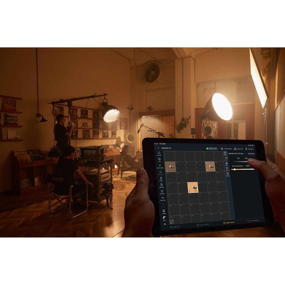 Featuring multiple control options—including DMX, CRMX, Art-Net, RDM, and Bluetooth app connectivity (via Godox KNOWLED app)—the M600Bi Pro offers total flexibility for remote operation and integration into complex lighting networks. Its fan-cooled design maintains optimal performance during extended shoots, while its IP54-rated dust and water resistance ensures reliability even in demanding weather conditions.