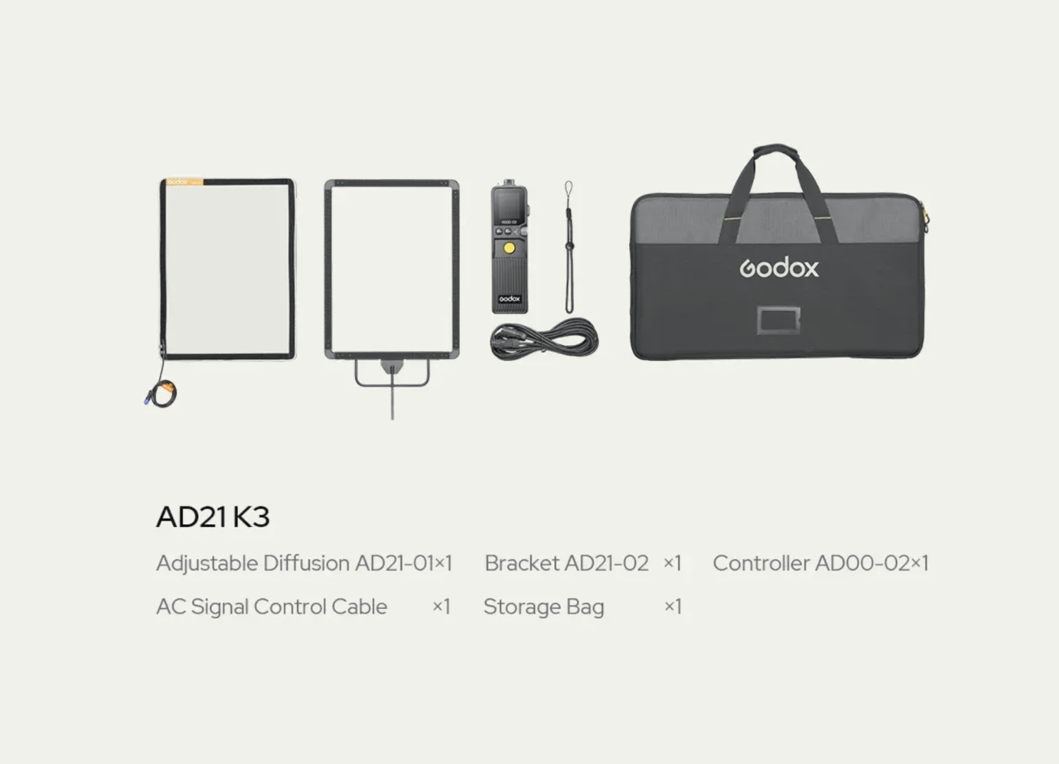 The Godox Knowled AD21 K3 Adjustable Diffuser Kit is an advanced motorized diffusion system designed for creators who need tight control over light softness without swapping physical modifiers. Its electronically adjustable panel shifts seamlessly from hard to ultra-soft diffusion using two modes: Level Mode for 0–100% visual diffusion control, and Light Reduction Mode offering professional EV adjustments from -0.1 to -2.0 EV. Built with patented frequency adjustment technology, it ensures flicker-free operation across five frequency levels and supports recording at frame rates up to 300fps. The collapsible design keeps the panel compact for transport while allowing fast setup on location. Versatile power options include USB-C, V-mount, or NP-F batteries, delivering up to 20 hours of runtime on a 100Wh power source. Control flexibility is equally broad, supporting a dedicated controller, Bluetooth app, and DMX/RDM. The included AD00-02 controller offers streamlined operation in a lightweight form factor, making the AD21 K3 a highly adaptable tool for professional lighting environments.