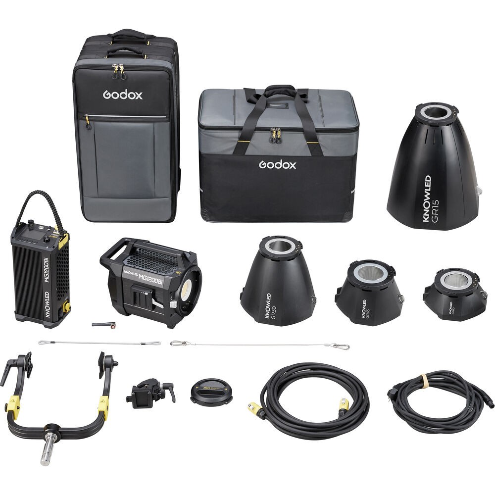 The Godox Knowled MG1200Bi K2 Bi-Color LED Light Kit delivers versatile, high-powered illumination for professional film and photography. With a 2800–6500K color range, 0–100% dimming, and superior color accuracy (CRI 96, TLCI 96), it includes four beam-shaping reflectors (15°, 30°, 45°, 60°) for precise control, advanced wireless and DMX connectivity, and rugged, weather-resistant construction—perfect for studio and on-location shoots.