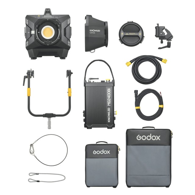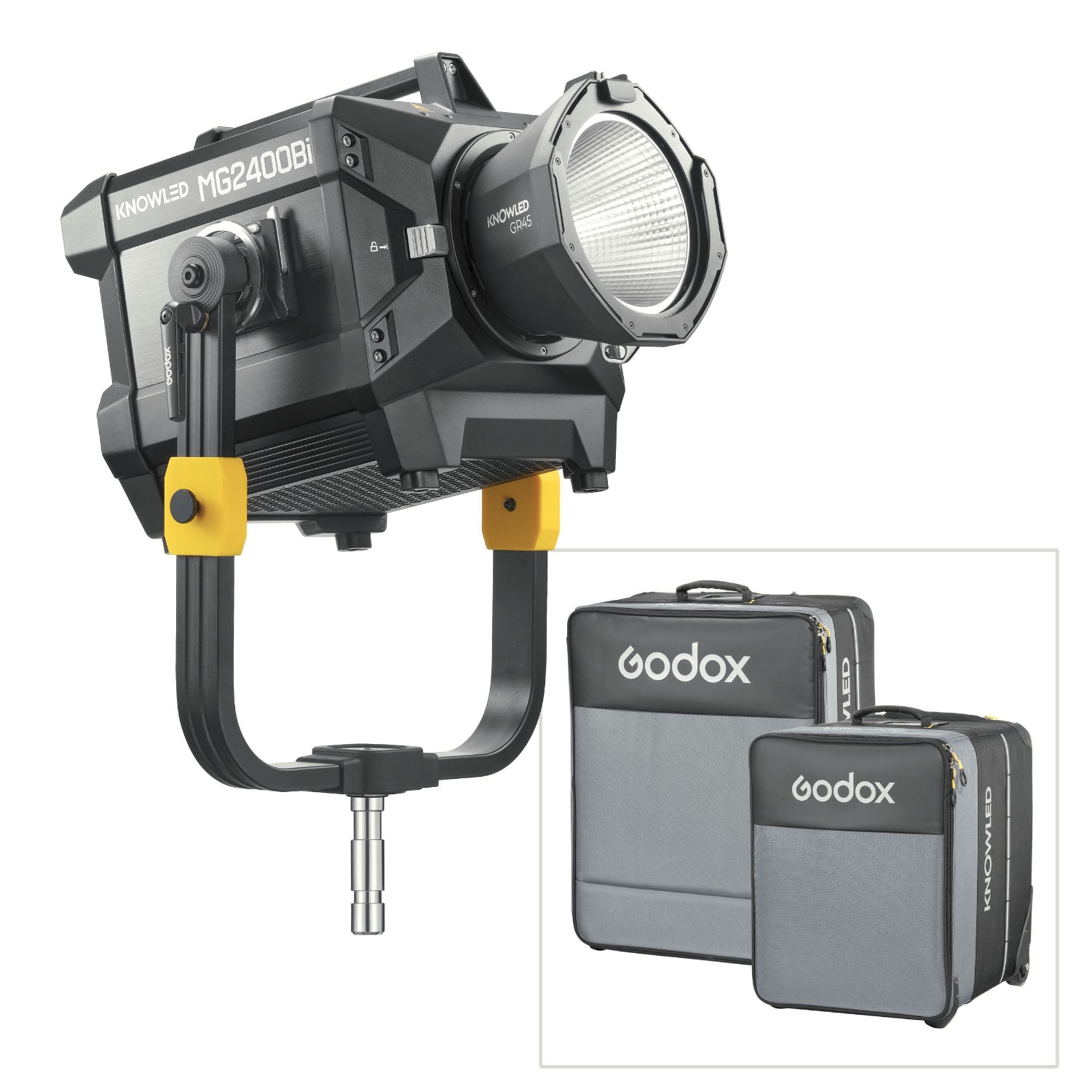The Godox Knowled MG2400Bi SE K1 SB is a 2600W ultra-powerful bi-color LED broadcast studio light with a soft bag and 45° reflector, designed for professional film, TV, and theatrical productions. Featuring IP54 weather resistance, CRI/TLCI of 96+, precise 0.1% dimming, 11 built-in FX modes, and comprehensive control via DMX, CRMX, and Godox Light App, it delivers cinema-grade lighting performance for high-end productions.