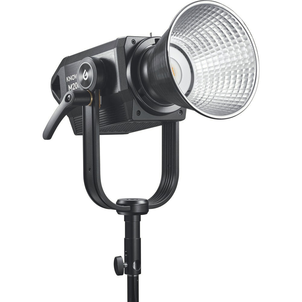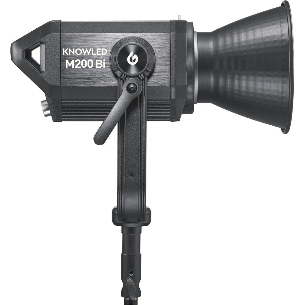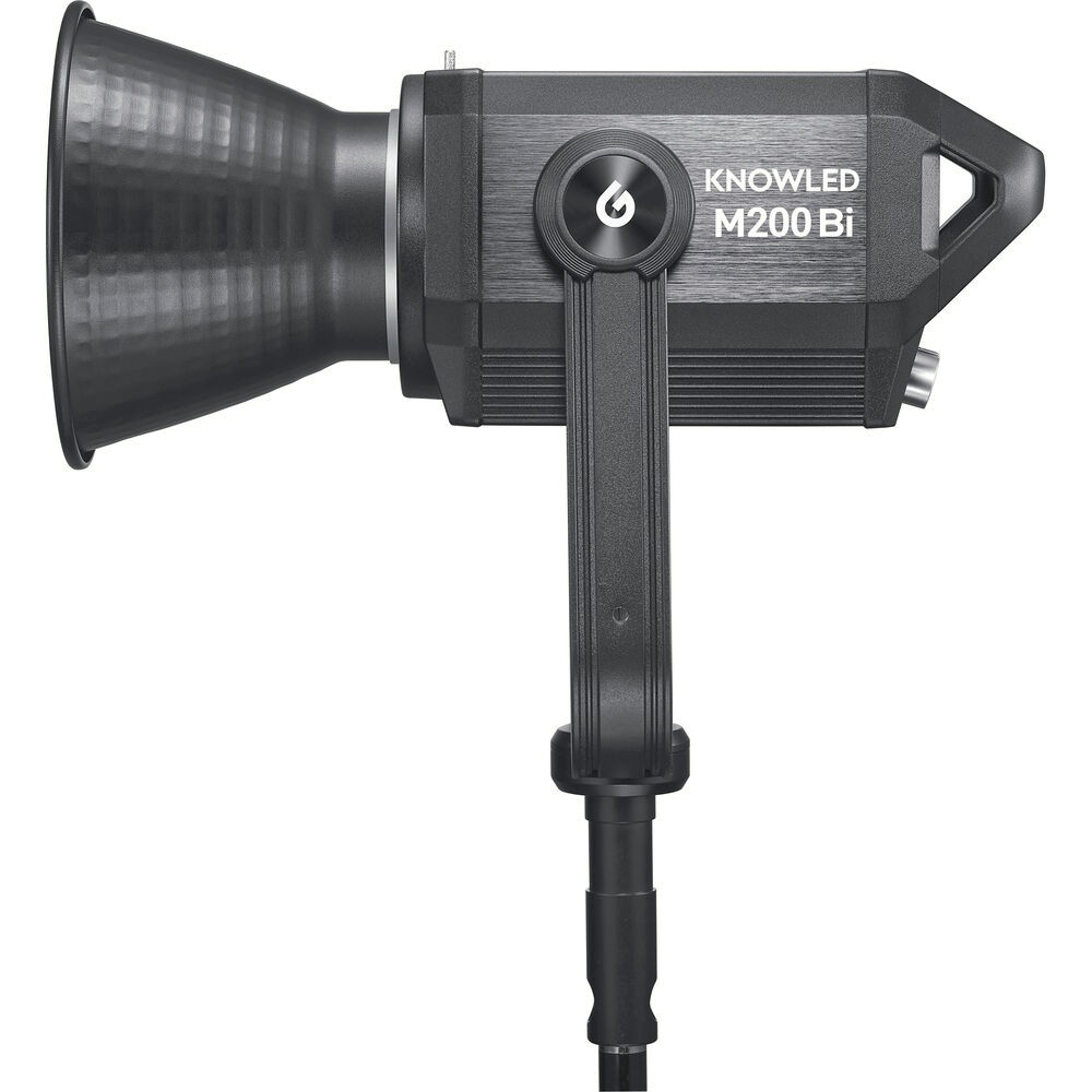 Elevate your lighting capabilities with the Godox Knowled M200BI Bi-Color LED Light, a high-performance COB fixture engineered for demanding film, video, and studio applications. Featuring a flexible 2800–6500K color range, the M200BI allows precise mood and atmosphere control while maintaining outstanding color accuracy with CRI 96 and TLCI 97 ratings. Its powerful output delivers crisp, textured light with sharp shadow definition, enhanced even further when using the included Bowens-mount reflector. With smooth 0–100% stepless dimming, flicker-free performance, and seven built-in creative lighting effects—such as lightning, fire, broken bulb, and TV—the M200BI adapts instantly to any scene. The fixture supports multi-control methods including DMX, Bluetooth, the Godox Light app, and 2.4GHz wireless, offering 32 channels and 16 groups for complex lighting setups. Built for both studio and location work, it runs on universal AC power or dual V-mount batteries (optional) and features a highly efficient cooling system for quiet operation. Rugged, versatile, and lighting-modifier-ready via its Bowens S-mount, the M200BI is a complete professional solution packed into a compact, durable design.