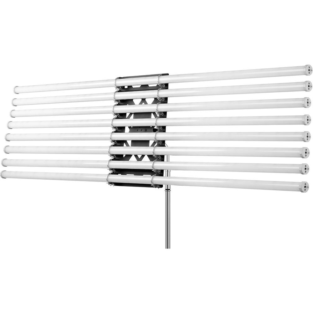 The Godox Knowled TP-B8 Eight-Light Bracket Kit allows mounting of up to eight 2' or 4' TP Series LED tubes, creating a versatile, large-scale light source. Crafted from durable all-metal construction, it features a ball-and-socket joint for flexible positioning and a 5/8" stand adapter compatible with standard light stands.