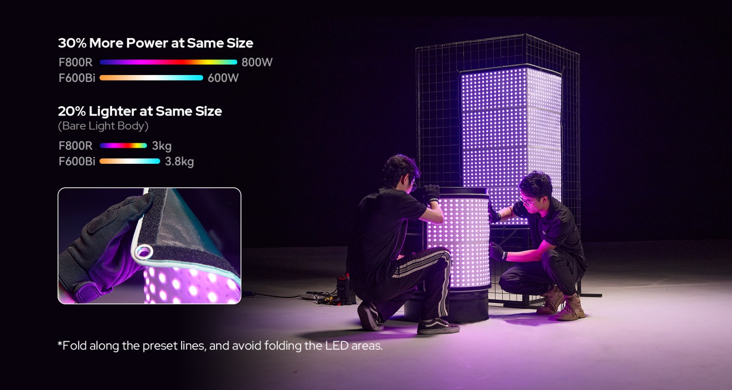 Built for real-world production environments, the F100R features IP54 weather resistance, protecting both the light mat and controller from dust and water splashes—making it suitable for both studio and outdoor location shoots. The newly upgraded metal X-bracket improves durability while allowing easier installation in confined spaces.