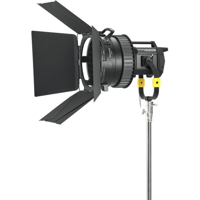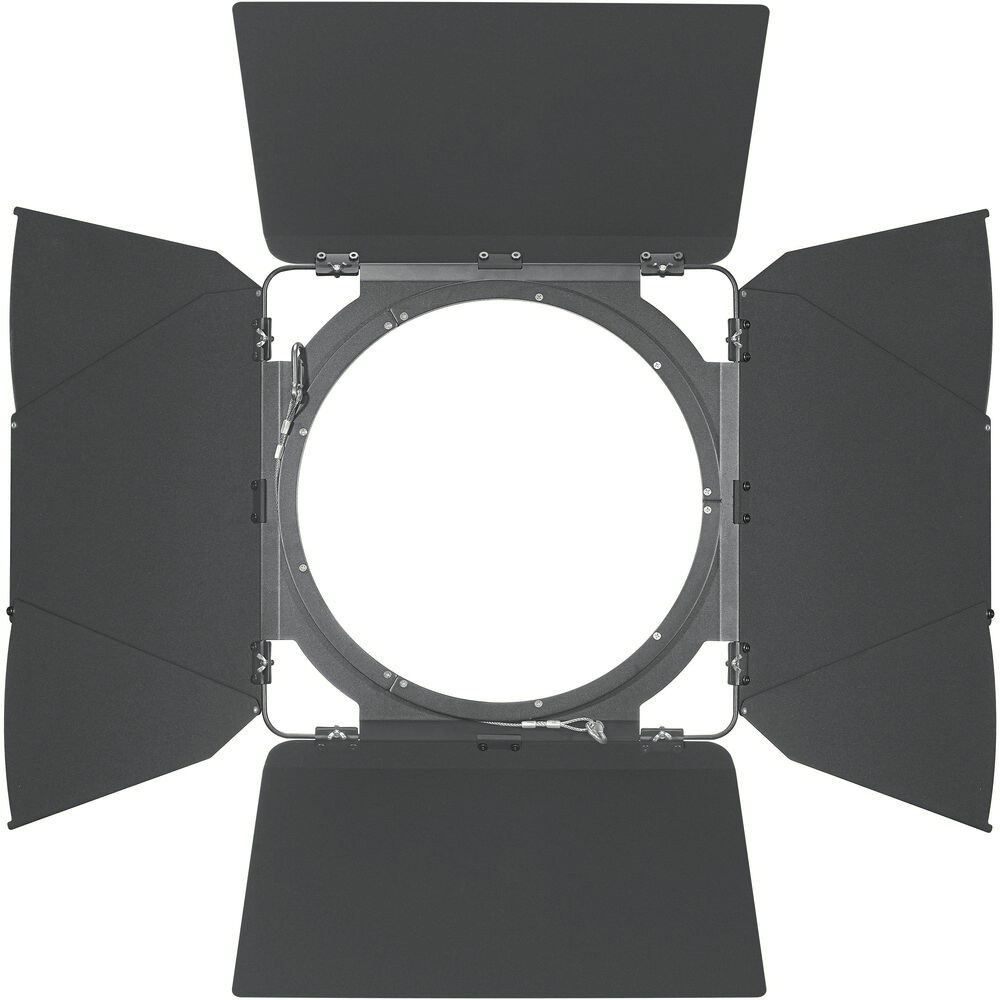 The Godox Knowled GF14B 4-way Barndoors for GF14 Fresnel lenses provide precise beam shaping, directional control, and spill light prevention for Godox MG1200Bi Bi-Color LED Monolights