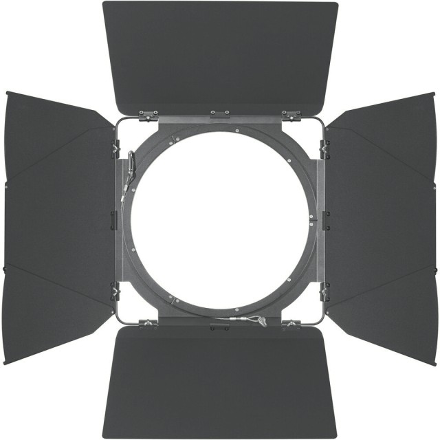 The Godox Knowled GF14B Barndoors are specifically designed for the GF14 Fresnel lens, giving photographers and videographers precise control over light direction and spread. Featuring a 4-leaf design, these barndoors allow you to shape your light, prevent unwanted spill, and reduce lens flare, ensuring clean, focused illumination on set. Constructed from durable metal and compatible with Godox KNOWLED MG1200Bi Bi-Color LED Monolights, the GF14B barndoors are an essential accessory for professional studio and location lighting setups.