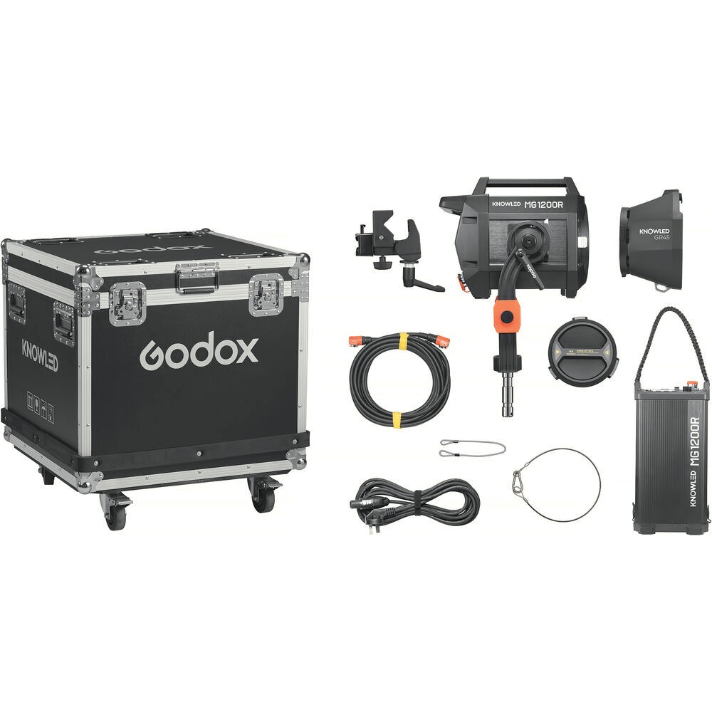 Elevate your lighting setup with the Godox Knowled MG1200R RGB LED Monolight Kit, a powerful 1500W full-color RGB fixture designed for professional filmmakers and photographers. This versatile light delivers 21,300 lux at 9.8' (with included 45° reflector) and offers an extensive 1800–10,000K color temperature range for accurate and dynamic lighting. Featuring CRI 96 and TLCI 95 ratings, it ensures exceptional color fidelity, while onboard, DMX, CRMX, and app control provide flexible management up to 131' away.