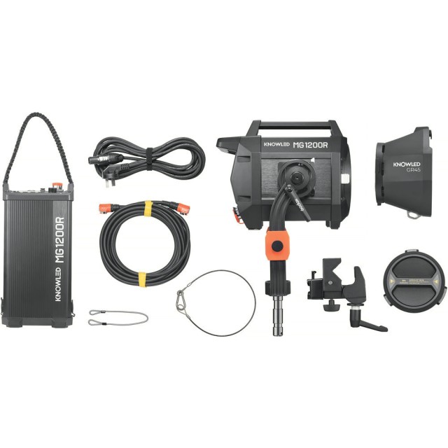 The Godox Knowled MG1200R is a flagship full-color RGB LED fixture engineered for demanding cinema, broadcast, and commercial productions that require premium output, deep color control, and uncompromising durability. Delivering an impressive 1600W of power and producing up to 21,300 lux at 9.8 ft with its included 45° reflector, the MG1200R provides a punchy, controllable beam ideal for key lighting, hard directional effects, or large set illumination.