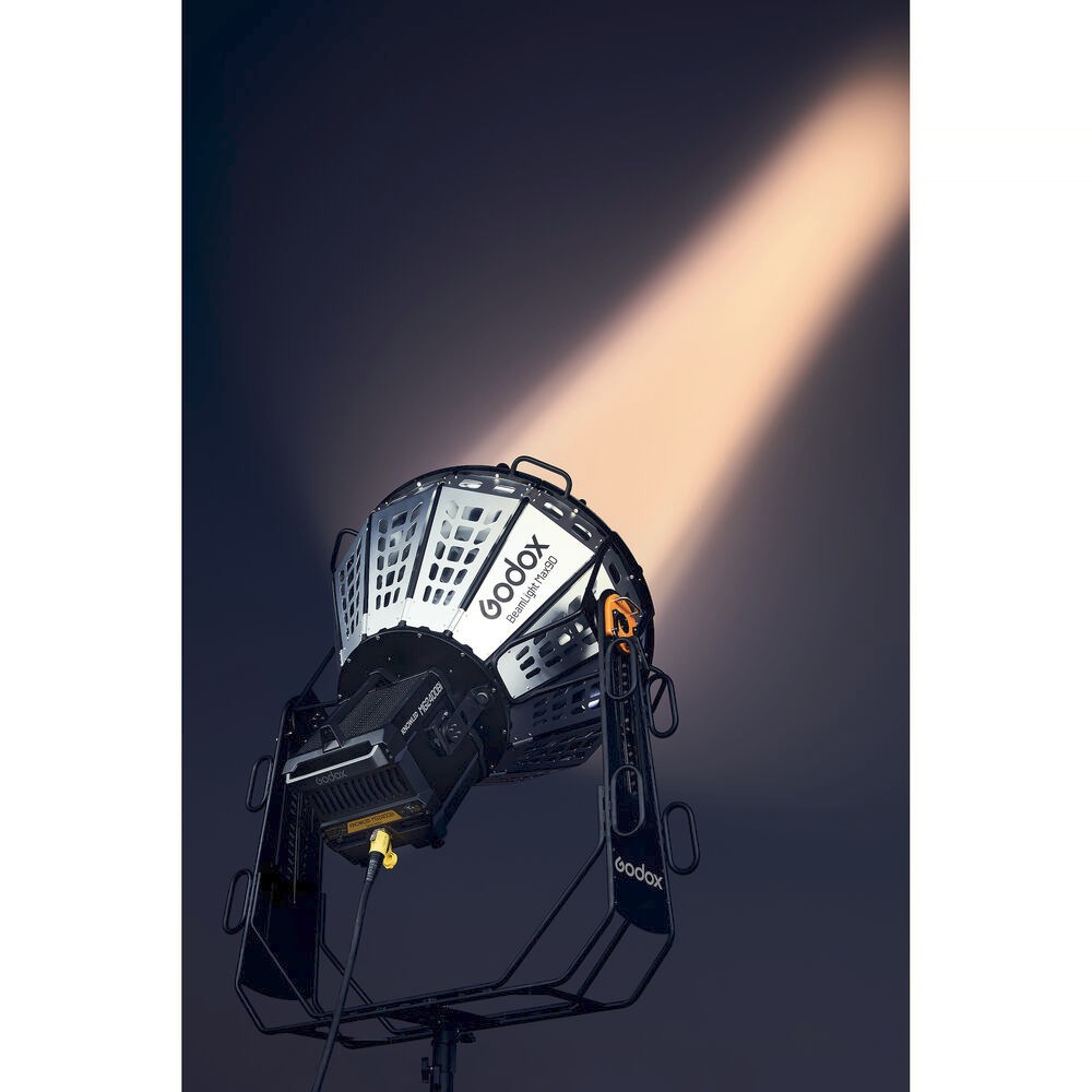 The Godox Knowled BeamLight Max90 is a professional, cinema-grade parallel beam reflector engineered for long-throw lighting with Godox MG-series LED lights, including the MG2400Bi, MG1200Bi, MG1200R, and MG2400R. Its precise optical design produces a 5° near-parallel beam, providing minimal light falloff and exceptional distance coverage—perfect for illuminating large sets, building facades, or natural sunlight replication.