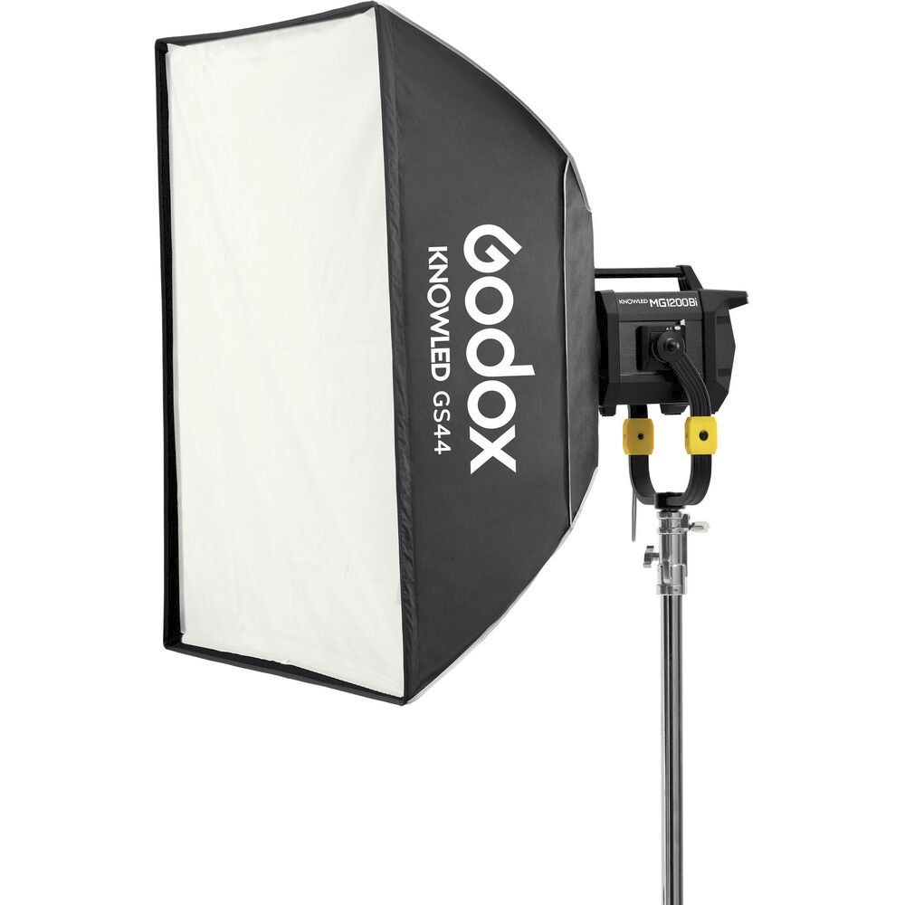 The Godox Knowled 120×120cm Rectangular Softbox provides soft, even lighting for photo and video production, designed specifically for G-mount fixtures like the MG1200Bi. It features a built-in speed ring, white interior, wide diffusion surface, and included grid for enhanced control.