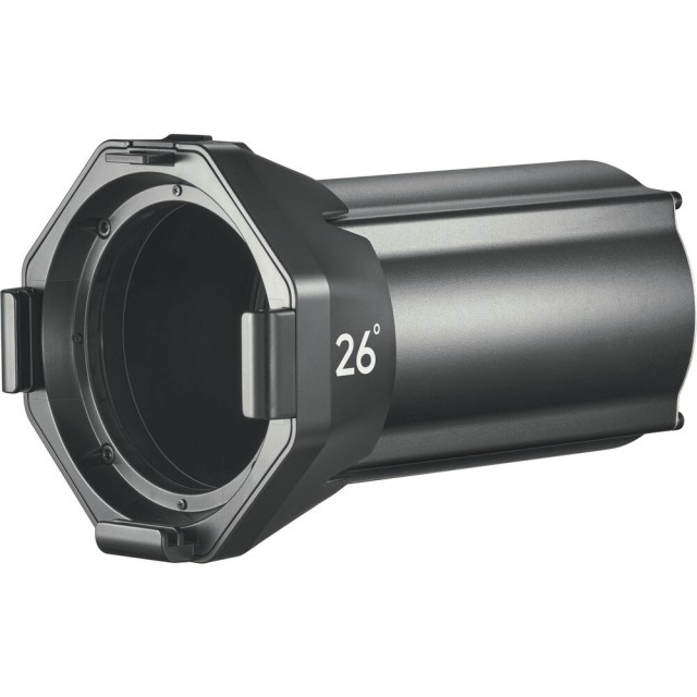 The Godox Knowled Interchangeable Lens 26° is a high-quality accessory for Godox Spotlight Attachments, enabling precise light shaping with a narrow 26° beam angle. Ideal for creating focused highlights, accent lighting, or dramatic effects, this lens gives professionals the flexibility to adapt their lighting setup quickly. Crafted for durability and ease of use, it can be interchanged effortlessly with other Godox lenses, offering versatility for different lighting scenarios. Whether you are lighting a studio portrait, a product shoot, or a cinematic scene, this lens enhances your creative control over the light.