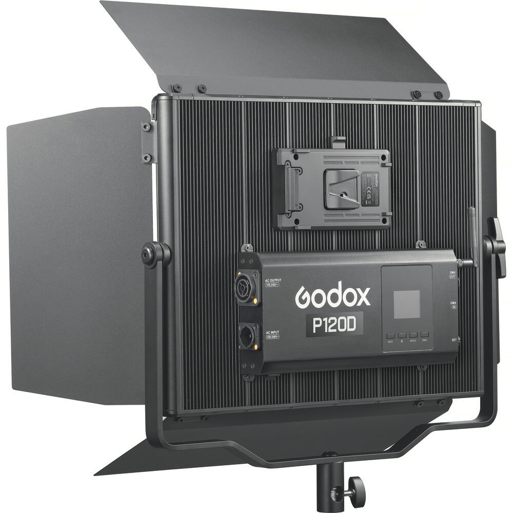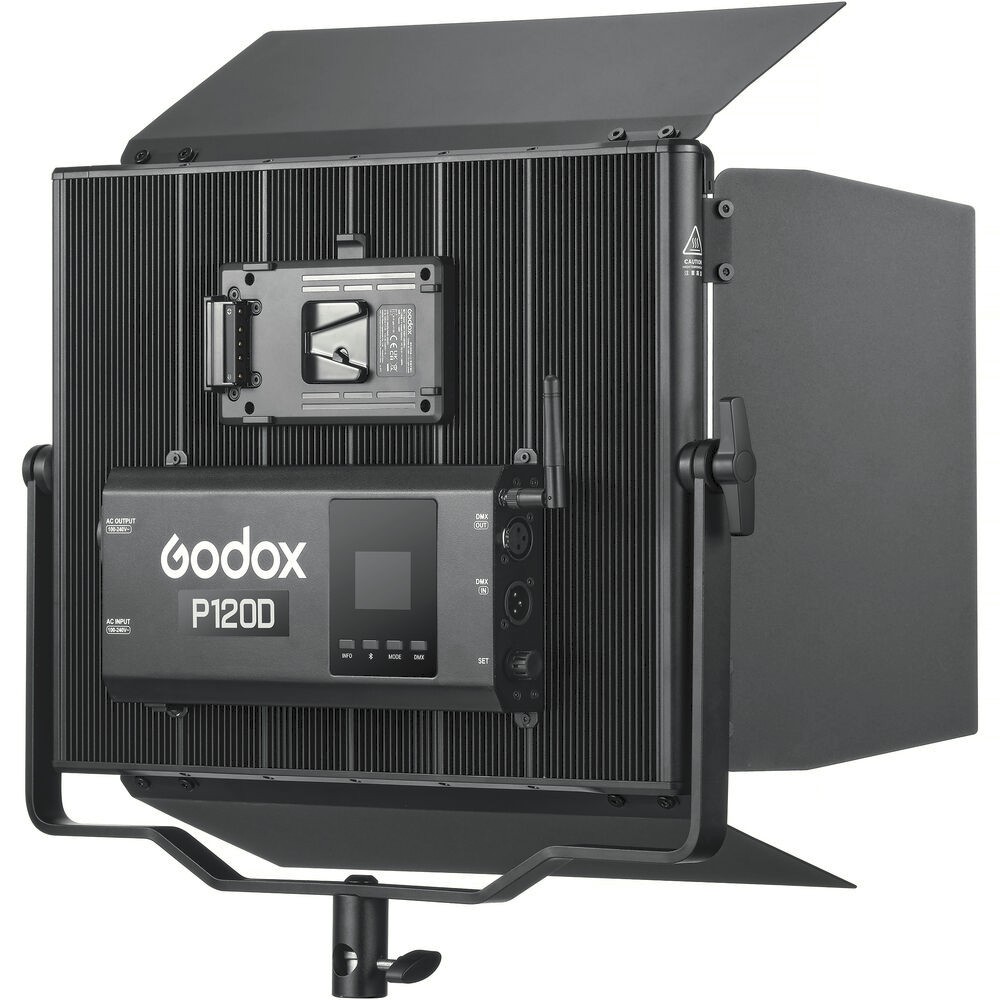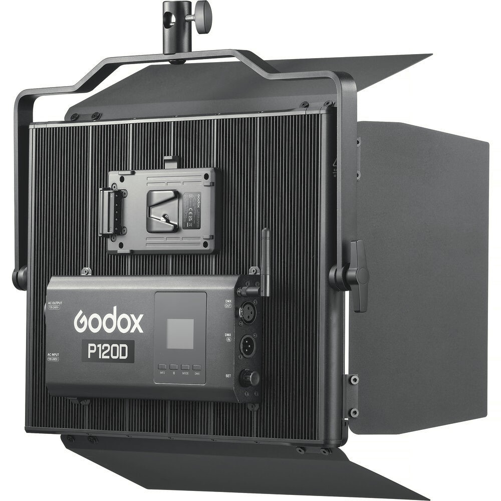 The Godox Knowled P120D K1 is a 5600K daylight LED panel delivering 4720 lux at 3.3', offering soft yet powerful illumination for broadcast, interviews, and on-location video work. Featuring AC/DC power options, onboard/DMX/app control, daisy-chain capability, a slim design, barndoors, and a carry bag, it is a versatile and portable lighting solution for professional creators.