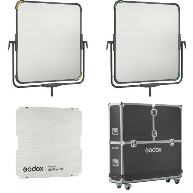 The Godox Knowled LiteFlow 100 K1 Kit is a professional double-sided reflector system featuring two 40×40" (100×100 cm) aluminum-coated reflectors with varying diffusion types. Housed in a robust flight case, it offers versatile, cinematic lighting solutions for photography and filmmaking.