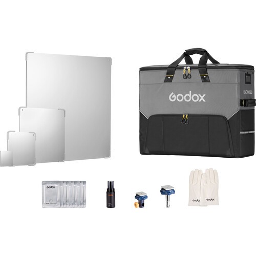 The Godox Knowled LiteFlow K1 Reflector Kit is a complete, professional-grade reflector system designed to enhance lighting precision and creativity in film, broadcast, and photography production. The kit features 16 aluminum-coated reflectors in four sizes—3 x 3", 6 x 6", 10 x 10", and 20 x 20"—each offering distinct light diffusion characteristics, from hard and medium to soft and strip diffusion.