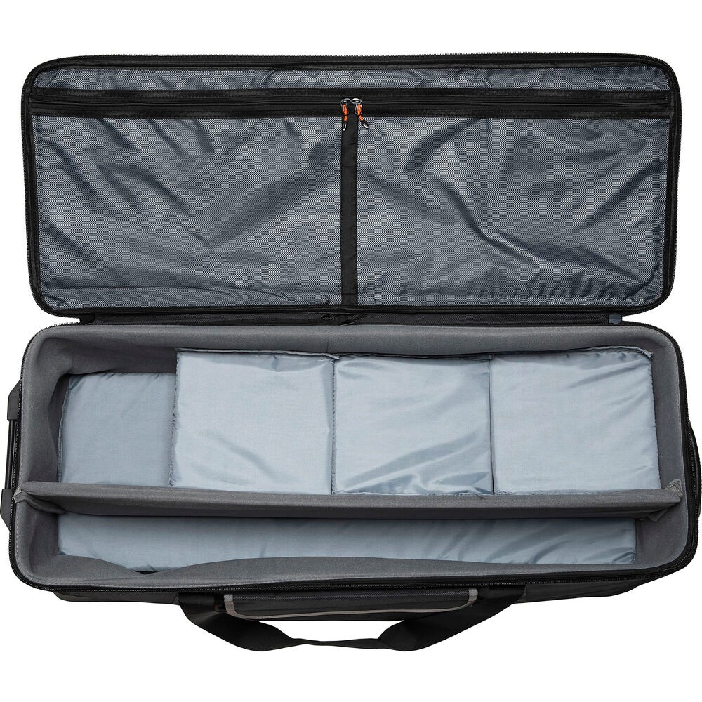 The kit is powered via AC or optional V-mount batteries, making it suitable for both studio and on-location shoots. Safety features include a fixing band and wire rope for secure setup. All three lights come with sturdy light stands, reflectors, power adapters, and protective covers. The included Godox CB-06 hard carrying case with wheels keeps your entire kit organized and portable, with extra pockets for small accessories and a clear ID window.