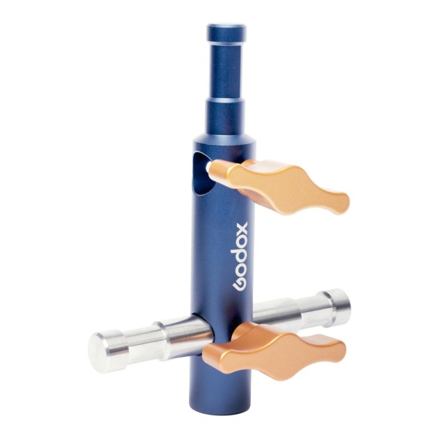 Featuring a 5/8" baby-pin stud at the top and a removable double-ended 5/8" spigot, the MA2R2S allows mounting of up to three brackets or accessories to a single stand. The spigot can be inserted into either of the two receiver holes in the main adapter body, enabling both simple and intricate rig configurations. This versatility expands creative possibilities for cinematographers, DOPs, and lighting gaffers, making it easier to position LiteFlow panels and other accessories exactly where they are needed.