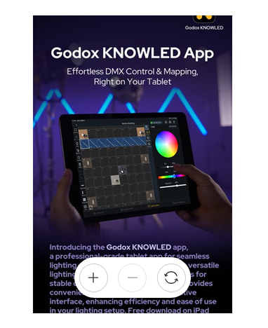 Designed for flexible operation, the panel can be controlled onboard, via DMX/RDM, LumenRadio/CRMX wireless, or through the Godox Light app with Bluetooth connectivity up to 98.4' (30 m). It features four dimming curves (linear, S-curve, exponential, logarithmic), a green-magenta shift, and 14 lighting effects including flash, lightning, TV, candle, and party presets. The fan-cooled design maintains optimal performance, while compatibility with optional modifiers such as Godox softboxes adds further versatility.