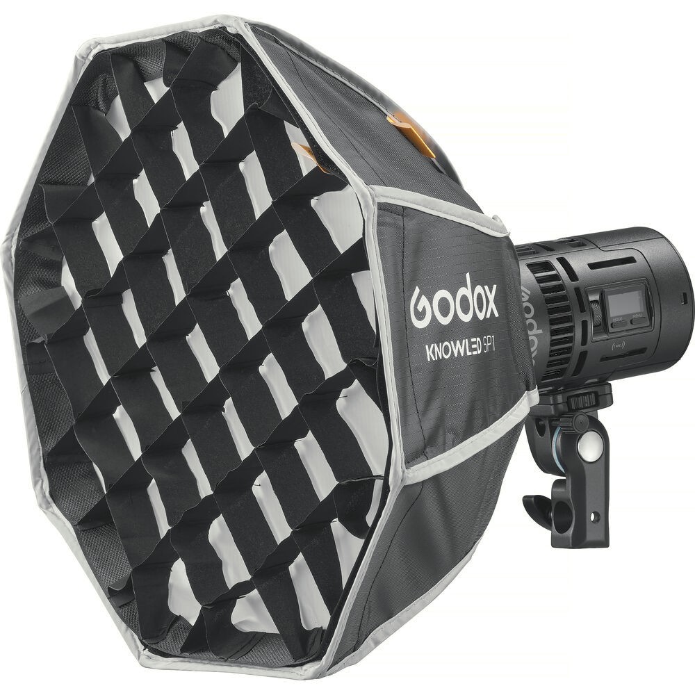 The Godox Knowled SP1 Parabolic Softbox is a high-quality lighting modifier created for use with the MS60Bi and MS60R LED lights. Its parabolic, 8-sided octagonal design with a 1-foot diameter delivers soft, diffused light that enhances subjects without harsh shadows, making it perfect for portrait, tabletop, and studio setups. The softbox comes with an included grid that provides directional control, reduces light spill, and allows for more focused lighting when needed.