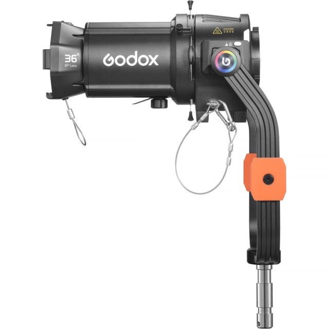The Godox Knowled Projection Attachment (Flat Bowen mount) is the perfect accessory for photographers and videographers seeking to expand the creative potential of their KNOWLED lighting system. Compatible with Godox KNOWLED M600R, M600BI PRO, and LA600R/LA600 lights, this projection attachment features a 36° optical projection lens, delivering sharp and focused light patterns. The package includes a versatile gobo set and holder, along with a color effects clip, allowing for dynamic lighting designs and color modifications on set. Designed with a proprietary back mount for easy attachment, its sleek black finish complements professional setups. Ideal for studio or on-location shoots, this attachment empowers creative lighting control for cinematic and photography applications.