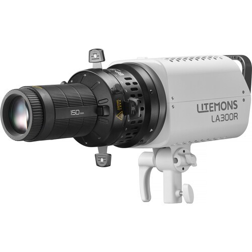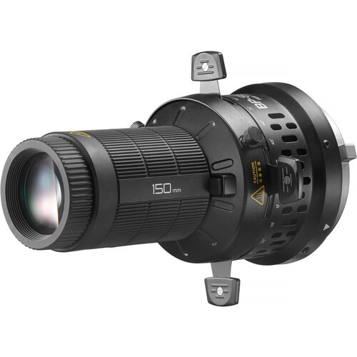 The Godox 150mm Projection Attachment for Litemons (LA150R/LA200R/LA300R/LA300Bi) enhances creative lighting possibilities. Featuring a 150mm optical lens, four adjustable leaves, and a Bowens-compatible mount, it comes with a gobo set and color clips for dynamic projection effects in portrait and environmental lighting.