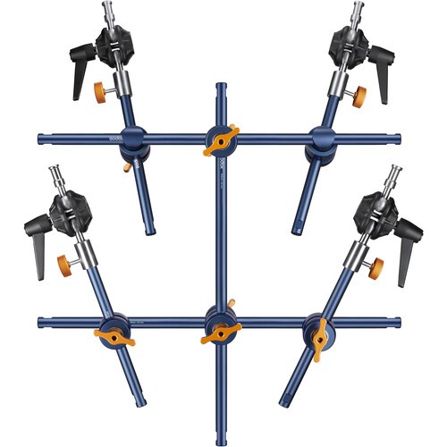 Developed for professional lighting setups, the Godox Knowled Reflector Array Grip Kit GK25 allows photographers and videographers to mount and adjust multiple LiteFlow reflectors with ease. The kit features three 19.6" long extension rods and four smaller rods, providing flexible positioning options. A set of ball joint arms with single and dual knobs ensures smooth, precise adjustments, while four clamps with ratchet handles securely hold your reflectors in place. Compatible with Godox LiteFlow reflectors, this dedicated mounting system enhances workflow efficiency and creative lighting control. Whether for studio or on-location shoots, the GK25 is a reliable solution for complex reflector arrangements.