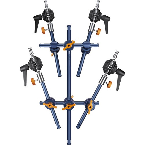 The Godox GK7 Multi-Reflector Array Grip Kit provides a reliable and flexible mounting system for KNOWLED LiteFlow reflectors, making it ideal for professional lighting setups. Designed to hold multiple LiteFlow boards simultaneously, the kit features one 19.6" long extension rod and six smaller rods for customizable configurations. Ball joint arms with single and dual knobs allow for precise adjustment, while four clamps with ratchet handles secure your reflectors firmly in place. Lightweight yet sturdy, the GK7 ensures smooth and versatile operation during photo or video shoots. Compatible with all Godox LiteFlow reflectors, it comes packaged in a box measuring 23.1 x 16.8 x 7.3 inches, weighing 24.57 lb.