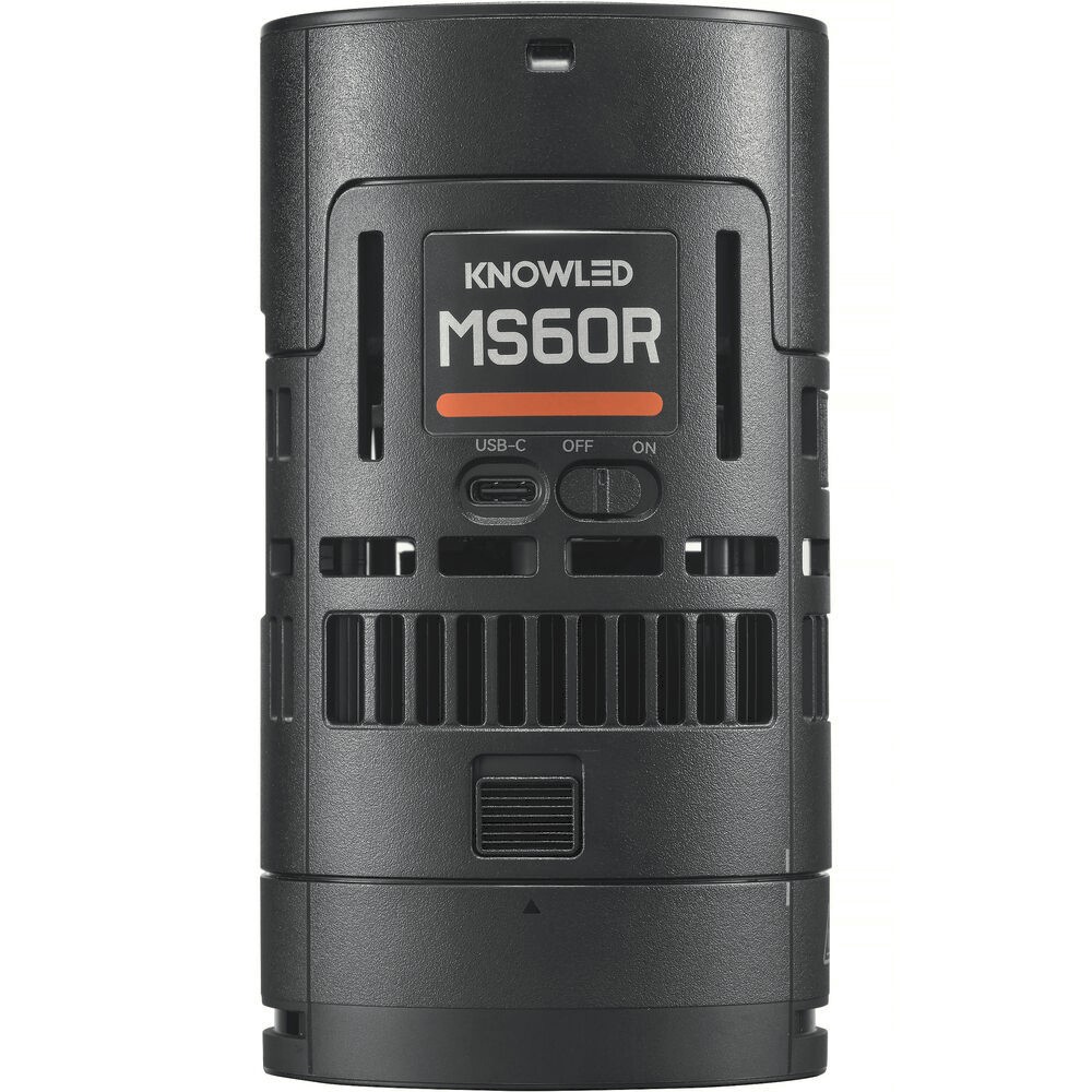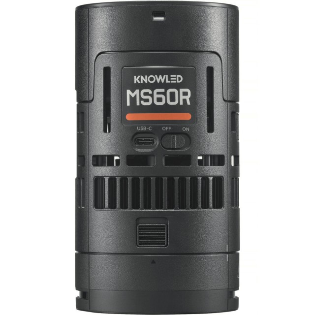 Power options are flexible with the included rechargeable battery and USB-C charging cable, and compatibility with optional NP-F or V-mount batteries, as well as AC adapters and E27 adapters for diverse setups. Fan cooling ensures safe operation, with adjustable modes for quiet environments. Magnetic accessory compatibility allows quick attachment of softboxes, reflectors, snoots, and other modifiers, making the MS60R highly adaptable to different production needs.