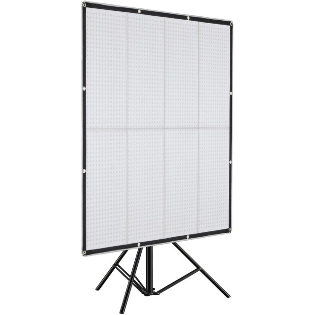 The Godox Knowled F600Bi is a versatile 4x4' bi-color flexible LED panel designed for film, broadcast, and video production. Offering adjustable color temperatures from 2700K to 8500K and superior color accuracy (CRI 96 | TLCI 96), it delivers powerful illumination up to 19,900 Lux at 1 meter. Lightweight, foldable, and compatible with AC or V-Mount battery operation, this professional fixture comes with a softbox, adapter holder, detachable metal frame, and carry case for ultimate portability and creative flexibility.