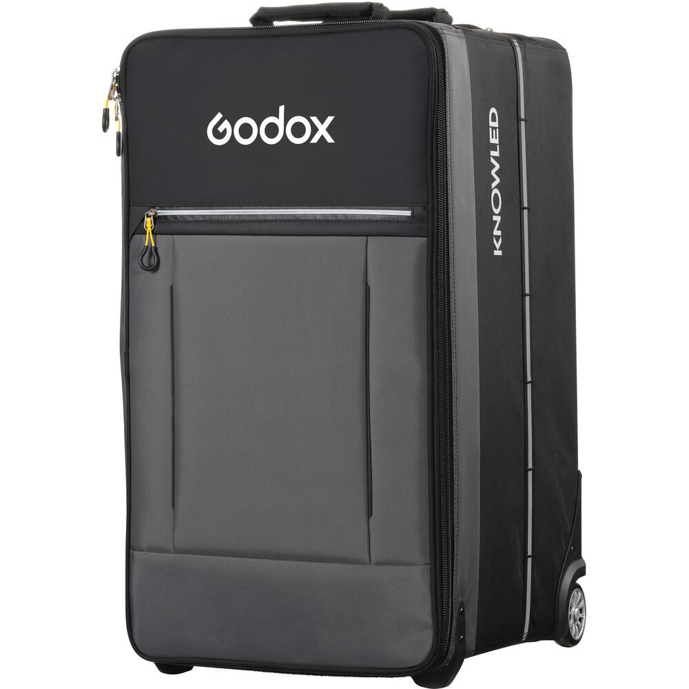 Protect and transport your MG1200BI light with the Godox Knowled Soft Case SC01. This structured soft case features a durable zipper closure, two smooth-rolling wheels, and a front exterior zip pocket for convenient storage, making it ideal for photographers on the move.