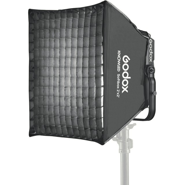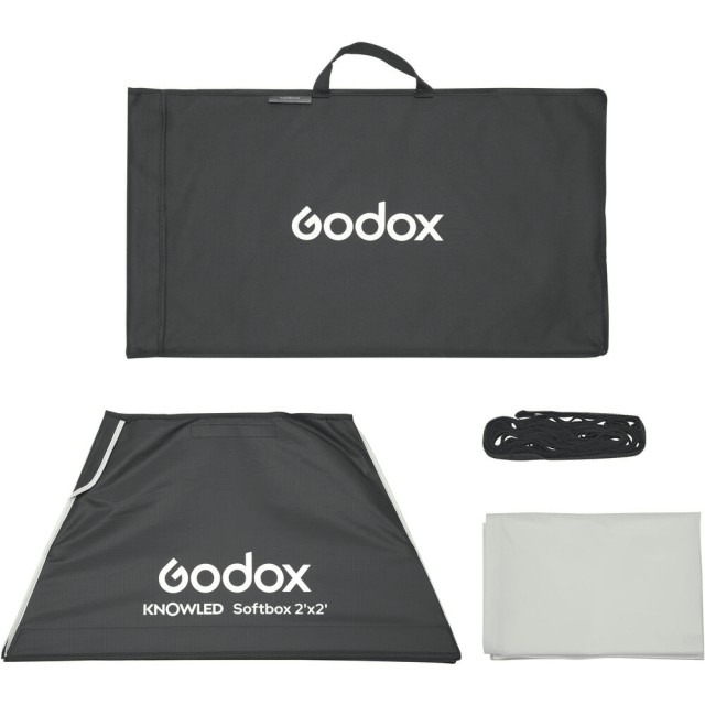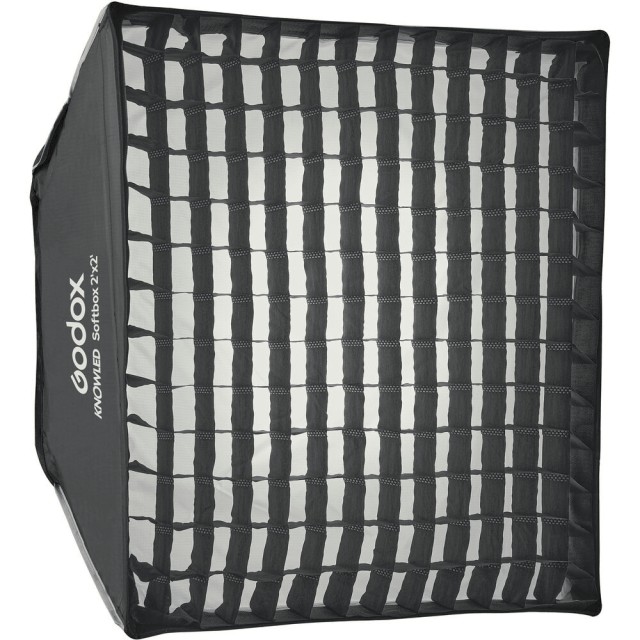 Enhance your lighting setup with the Godox Knowled Softbox with Grid, specifically designed for the Godox P600BI panel light. Measuring 24 x 24" (61 x 61 cm), this softbox softens and diffuses harsh light, creating a smooth, even illumination ideal for photography and videography. The included grid allows precise control over light spill, while the removable front face offers versatility for different lighting effects. Crafted from durable fabric and metal, the softbox attaches directly to the P600BI without requiring any bracket or speed ring, ensuring quick and easy setup. Lightweight and portable at just 2.44 lb, it comes packaged in a compact box (26 x 15 x 2.25") for convenient storage and transport.