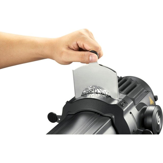 The spotlight’s optical system allows the use of cutting blades and gobos (included), enabling you to shape light with exceptional accuracy or project creative patterns onto backgrounds and subjects. Built with high-quality materials and a cooling-friendly open design, the VSA-19K ensures stable performance even during long shooting sessions. Compact yet robust, this attachment expands the creative potential of any Bowens-mount lighting kit.