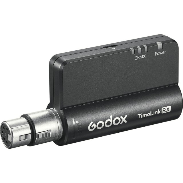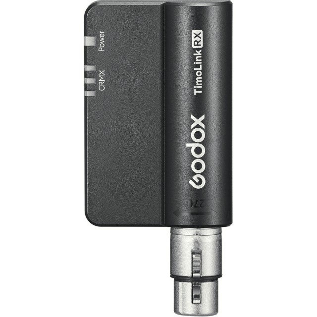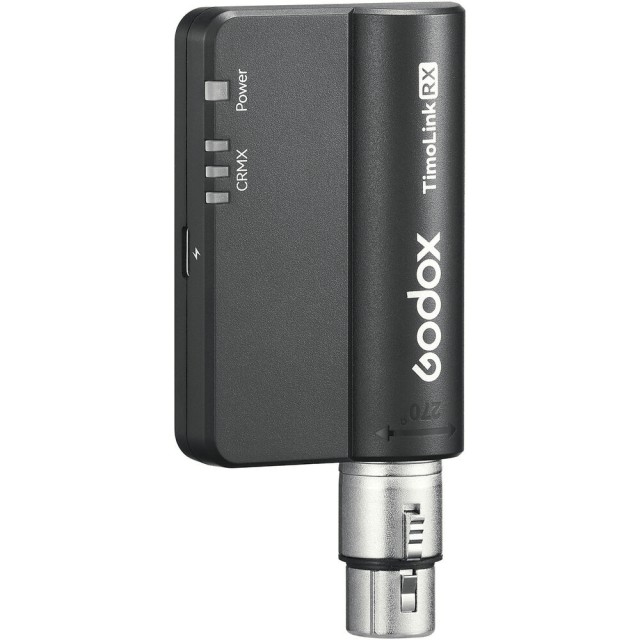 Designed for professional filmmakers, broadcasters, and lighting enthusiasts, the Godox TimoLink RX Wireless DMX Receiver delivers reliable wireless DMX control with its integrated LumenRadio CRMX receiver. Capable of receiving signals from CRMX-compatible fixtures or transmitters at distances up to 984’ (300 m), it eliminates the need for extensive cabling on set. The receiver features a 5-pin female XLR connector that rotates up to 270°, allowing for greater compatibility with different lighting interfaces. Compact and lightweight at just 2.8 oz (80 g), it operates in temperatures from 12 to 77°F (-20 to 45°C) and is powered via 5 VDC at 90 mA. The TimoLink RX is perfect for mobile setups and on-location shoots where reliability and ease of use are critical.