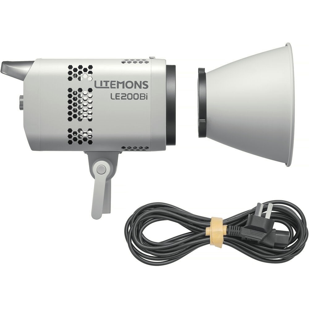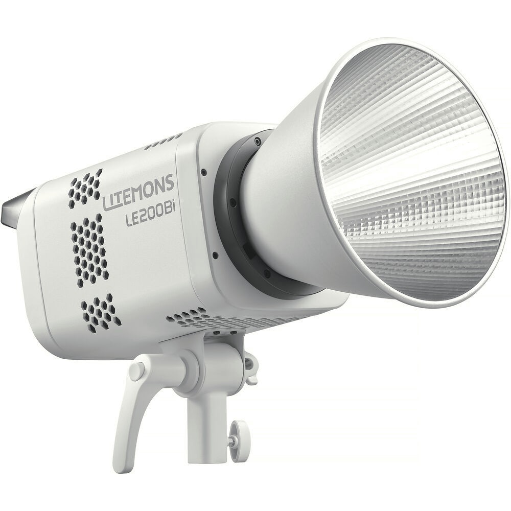 The Godox Litemons LE200Bi (White) is a compact, 220W bi-color COB LED monolight delivering bright, soft, and color-accurate illumination. Perfect for live streaming, studio work, and content creation, it offers 2800–6500K CCT, CRI/TLCI 98 accuracy, multiple control options including app, DMX, NFC, and onboard, plus Bowens S-mount compatibility. Includes reflector and AC power cord.