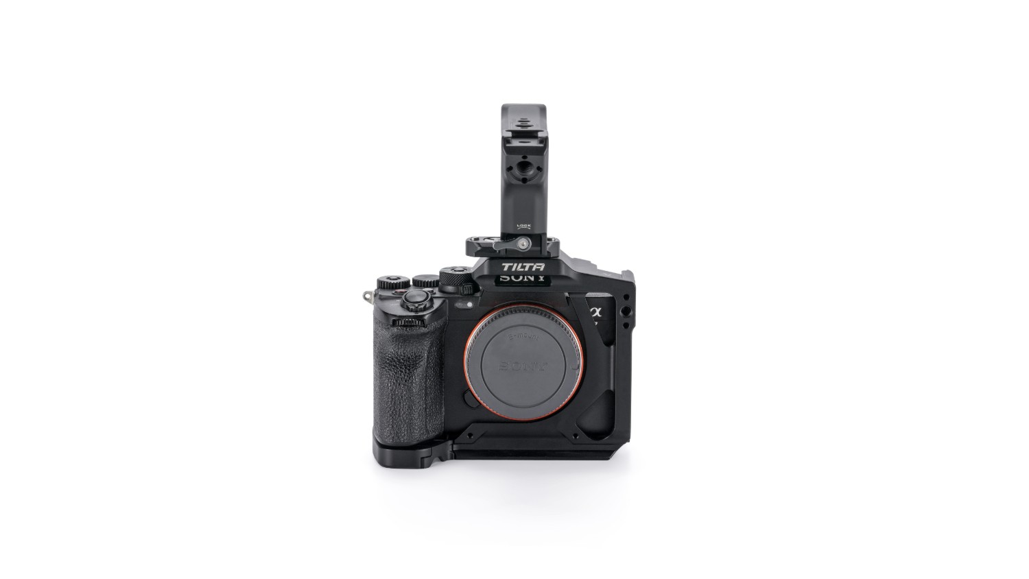 The Tilta Half Camera Cage for Sony Alpha 7 V Lightweight Kit in black is a precision-engineered rigging solution custom designed for the Sony Alpha 7 V camera body, along with compatibility for Alpha 7 IV and Alpha 7R V models. This lightweight half cage features an adjustable sliding mechanism that enables precise positioning and a secure fit across these camera bodies, making it ideal for hybrid shooters, videographers, and photographers who switch between multiple Sony mirrorless systems. The kit maintains the cameras compact form factor while expanding mounting options for accessories, ensuring unobstructed access to all controls, ports, battery compartment, and memory card slots.