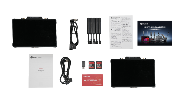 Hollyland Pyro 7 is a 7-inch wireless monitor that integrates the functionalities of TX, RX, and monitor, all in one. It utilizes Auto Dual-Band Hopping (ADH) technology. With 1,300ft (400m) and an incredibly low latency of only 60ms, Pyro 7 supports 2.4GHz/5GHz dual-band transmission and automatic frequency hopping. Its exceptional hardware design enables Pyro 7 to simultaneously connect one transmitter to four receivers, and the convenience of dual-camera monitoring is achieved through customizable shortcut keys. Additionally, the upgraded HollyOS system provides enhanced image analysis capabilities and allows for video file export via an external SD card. Pyro 7 is compatible with Pyro H and Pyro S, which means you can easily pair Pyro 7 with either Pyro H or Pyro S. This provides you with greater flexibility and scalability to meet various monitoring needs.