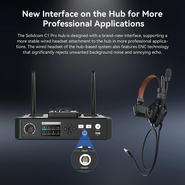 Hollyland Solidcom C1 Pro is the world’s first wireless dual-mic environmental noise cancellation (ENC) intercom system! The sound is captured with a directional microphone with ENC switch, that uses a secondary microphone in the headphone listening to environmental noise from all directions. The signal is then processed with the advanced ENC algorithm to ensure crystal clear voice reproduction. The C1 Pro has been created for production teams working in noisy environments where exceptional communication clarity is crucial, including music festivals, sports events, TV & film set production etc. The C1 Pro line is also backwards compatible with the possibility to mix-and-match with standard C1 system headsets and hubs. Furthemore, the Colidcom C1 Pro features a Push-to-Talk (PTT) functionality with Talk/Mute button and indicator light, and a button long press momentary mode where pushing the button enables the talk mode, releasing enables mute.