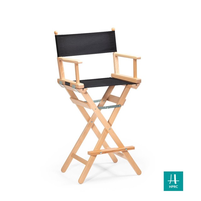 The high director's chair is a tall, folding wooden chair with dimensions 58x48x1190h cm. It is available in black and natural. The frame is made of beech wood and the seat with backrest is made of cotton. The chair combines a sturdy design with a lightweight construction, making it ideal for a variety of environments, while offering practicality and an elegant look.