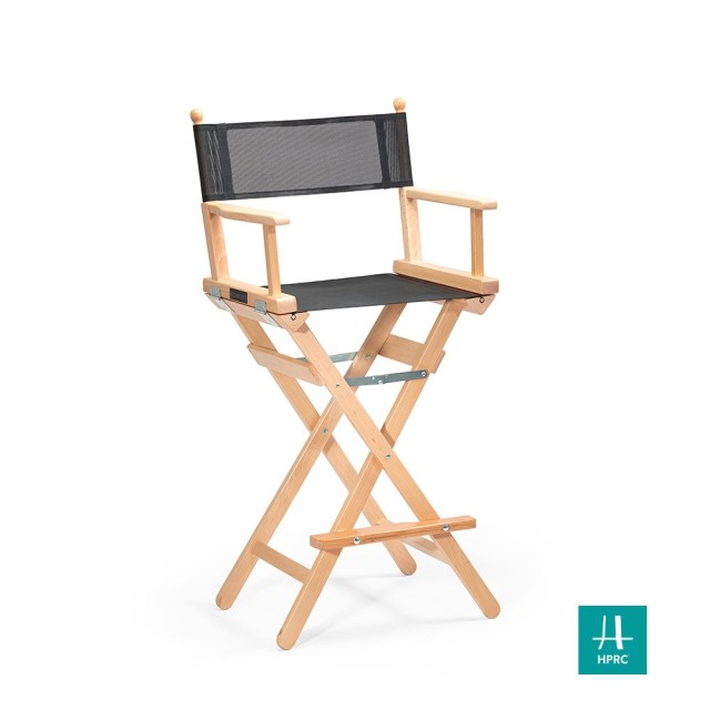 The high director's chair is a tall, folding wooden chair with dimensions 58x48x1190h cm. It is available in black and natural. The frame is made of beech wood and the seat with backrest is made of cotton. The chair combines a sturdy design with a lightweight construction, making it ideal for a variety of environments, while offering practicality and an elegant look.