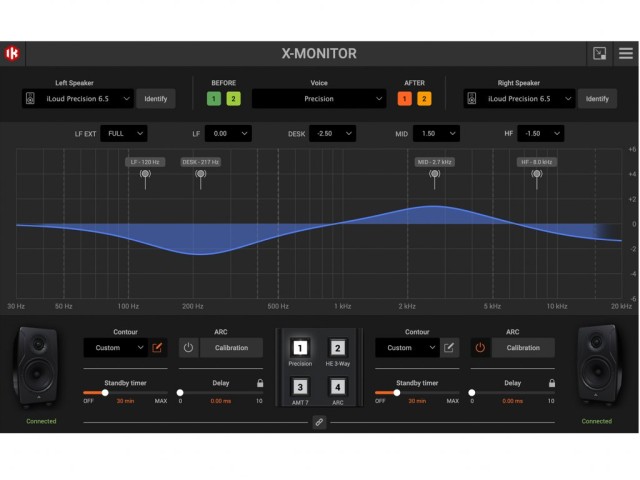 iLoud Precision monitors come with X-MONITOR, a newly developed advanced control application for Mac and Windows. This helps with ARC calibration and allows for advanced acoustic space settings and adjustments to fine tune iLoud Precision to your taste. At the same time, it offers convenient remote access to settings on the monitors' rear panel. The software is plug-n-play via a simple USB connection with no special setup required on your computer.