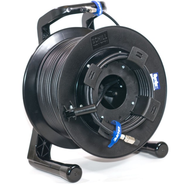 Flexible CAT6A STP cable 23AWG with outer diameter 8,6 mm with Telegartner RJ45 terminals, wound on Schill GT 310.RM cable drum. Ethernet cables are used not only for computer networks, but also more recently for digital audio networks, network cameras, HDBaseT transmissions. The total cable length is given including connectors.