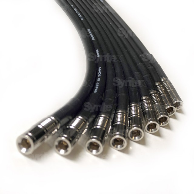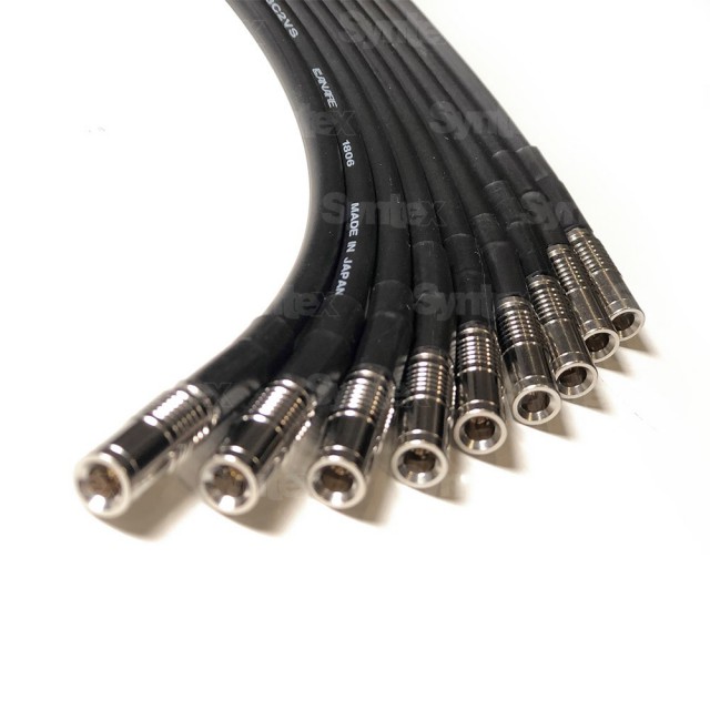 Set of 9 interconnect cables for Blackmagic Design DeckLink Quad cards. The cable set is made of high quality, flexible coaxial cable, DIN 1.0/2.3 and BNC F connectors from the Japanese manufacturer Canare.