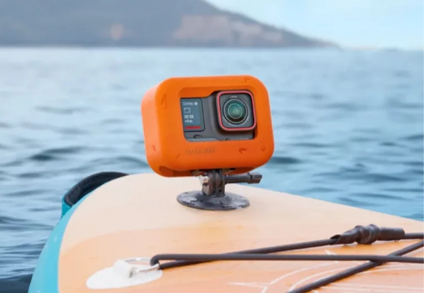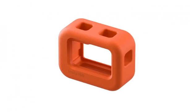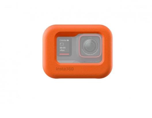 The Insta360 INST120-10 Ace Pro Floating Case prevents your camera from sinking during water activities. Featuring a bright orange color for high visibility, the case allows full access to camera buttons, microphone, and flip-up touchscreen. Its folding mounts on the bottom are compatible with the Quick Release Mount, making it a practical and essential accessory for aquatic filming.