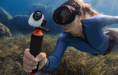 The camera allows for hands-free shooting thanks to its miniature dimensions and is water-resistant to a depth of up to 10 m. The camera's operating temperature is -20°C to +40°C. Insta360 GO Ultra features advanced FlowState stabilization, 360° Horizon Lock, and AI automatic editing and video cutting.