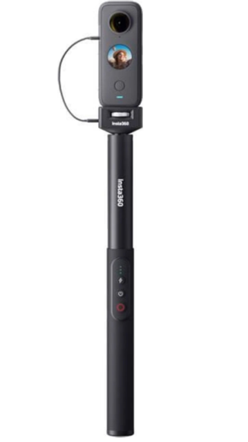 The Insta360 Selfie Stick (INST700-14) is an adjustable 33–100 cm selfie stick with a 4,500 mAh battery for charging your Insta360 ONE X2 camera on the go. It includes a built-in remote control for easy shooting, enabling unique third-person shots and extended recording sessions.