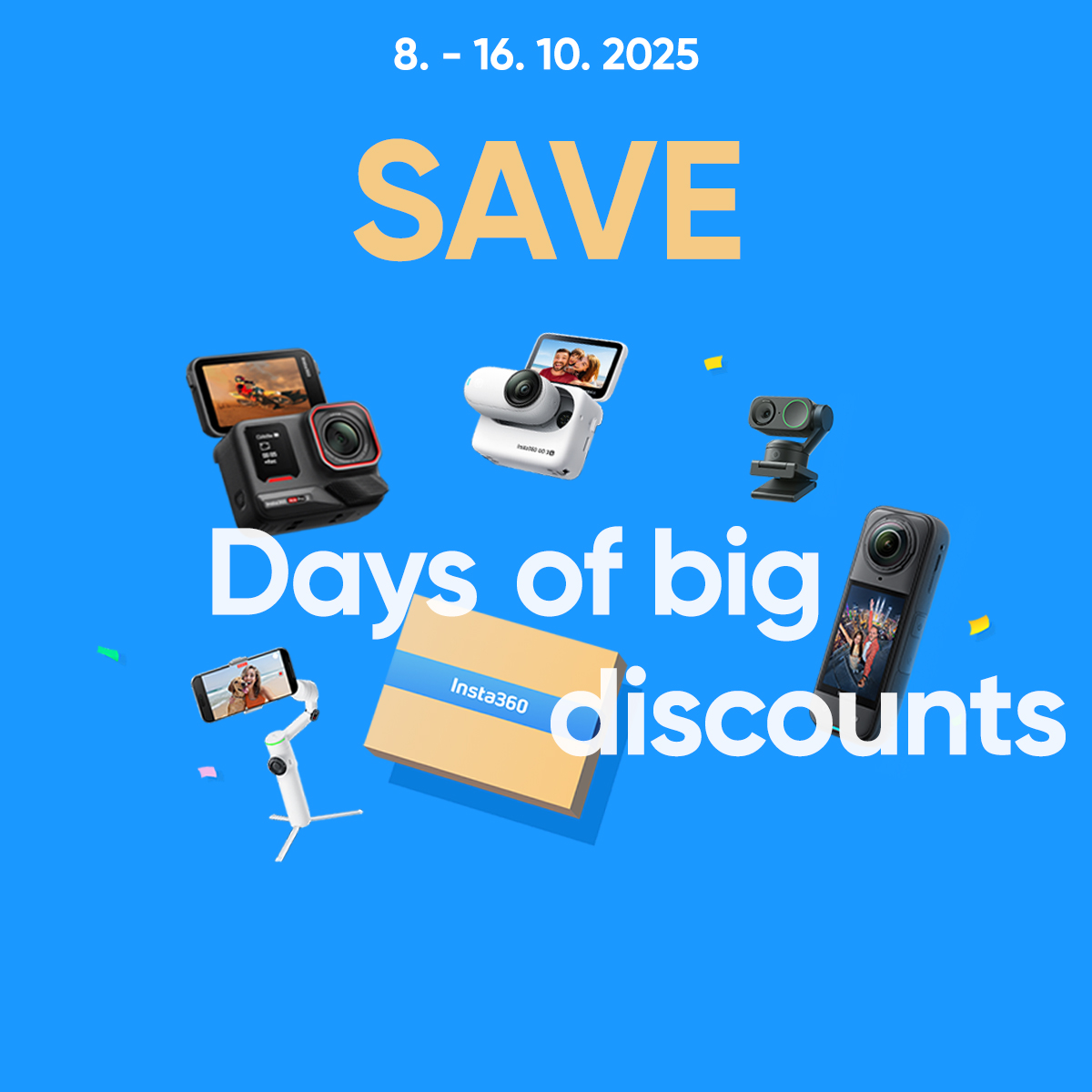 We have great news for you – from October 8 to 16, 2025, there will be a limited-time sale on a whole range of selected Insta360 products! Whether you shoot action videos, stream, or are looking for the right compact camera for your trips, now is the perfect time to expand your equipment and save money.
