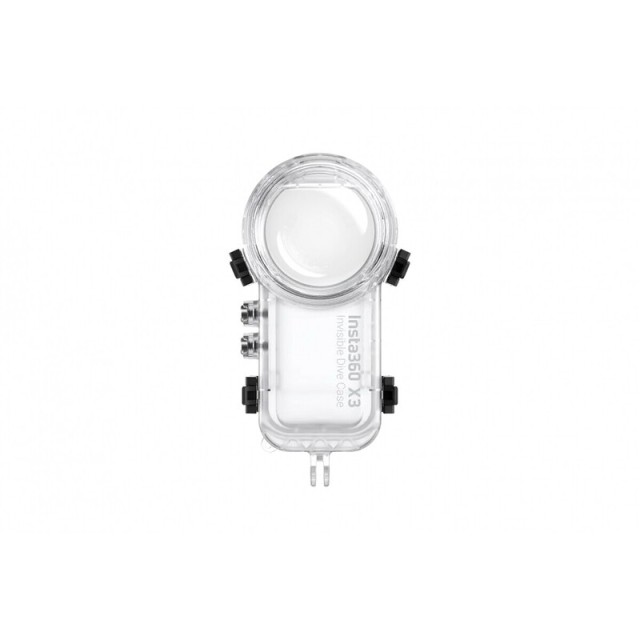 The new Insta360 X3 underwater housing better compensates for water refraction and prevents image distortion issues. Plus, the bottom of the housing remains 100% invisible during 360 shots. The underwater housing can be used up to 50m. Weight: 134 g
