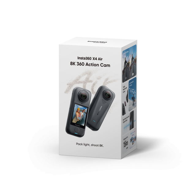 The Insta360 X4 Air weighs only 165 g, making it the lightest 8K 360° camera on the market—lighter than the previous X4 (204 g), X5 (200 g), and X3 (180 g) models. Thanks to its compact size, it fits easily in your pocket, backpack, or helmet. You'll hardly feel it when playing sports, traveling, or vlogging – the perfect everyday companion.