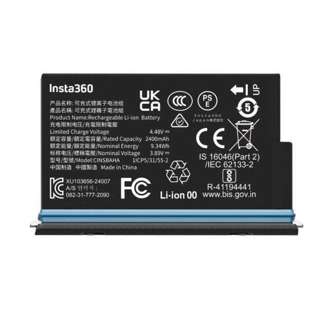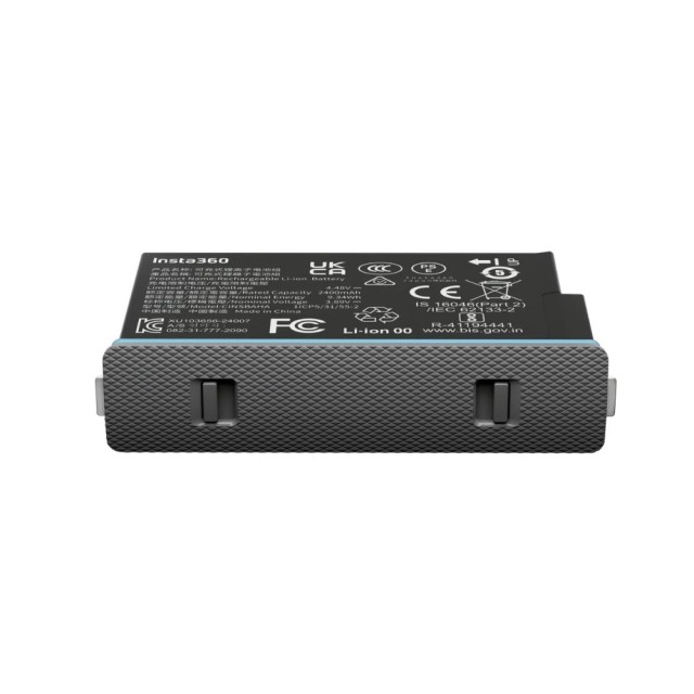Battery for Insta360 X5 action camera with 2400mAh capacity for extended shooting.