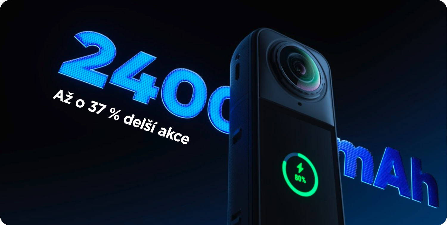 The new battery with an even more massive capacity of 2400mAhallows forup to 180 minutes of continuous shooting.Not enough? During a 20-minute snack break,you can rechargethe X5to 80% and continue the action!