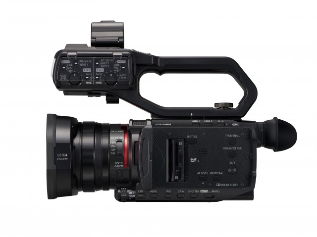 +48V Phantom Power Supply/MIC/LINE Selectable XLR Audio Input with Manual Volume is equipped for each of 2 channels. Also supported is a 24-bit linear PCM system (MOV/P2 MXF -- AG-CX10 only), 16-bit AAC (MP4), or Dolby Audio system (AVCHD) high-quality 2-channel audio recording. The optional handle unit (VW-HU1) is required for HC-X1500.