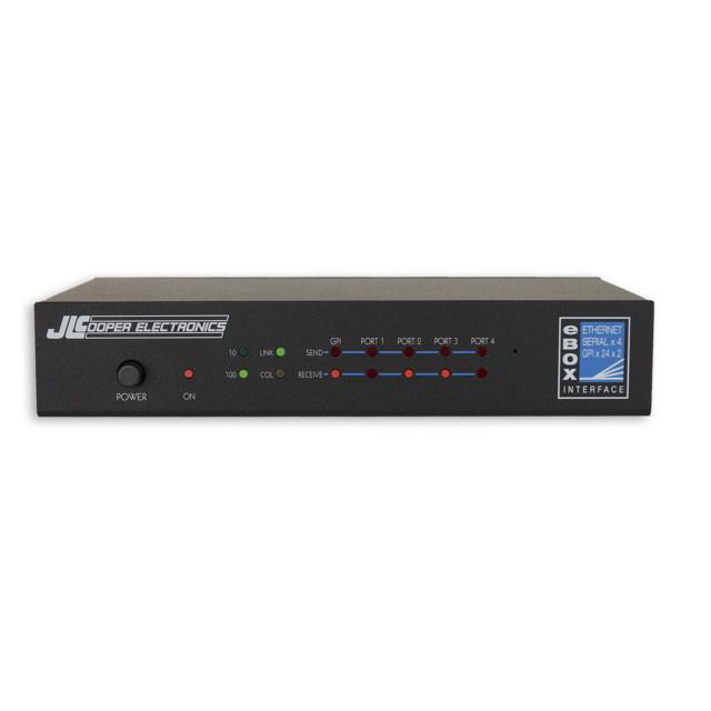 The eBOX from JL Cooper is a device that acts as a portal for controlling devices across your facility or across the world. It eliminates information bottlenecks and overcomes distance limitations typically inherent to serial communication.
